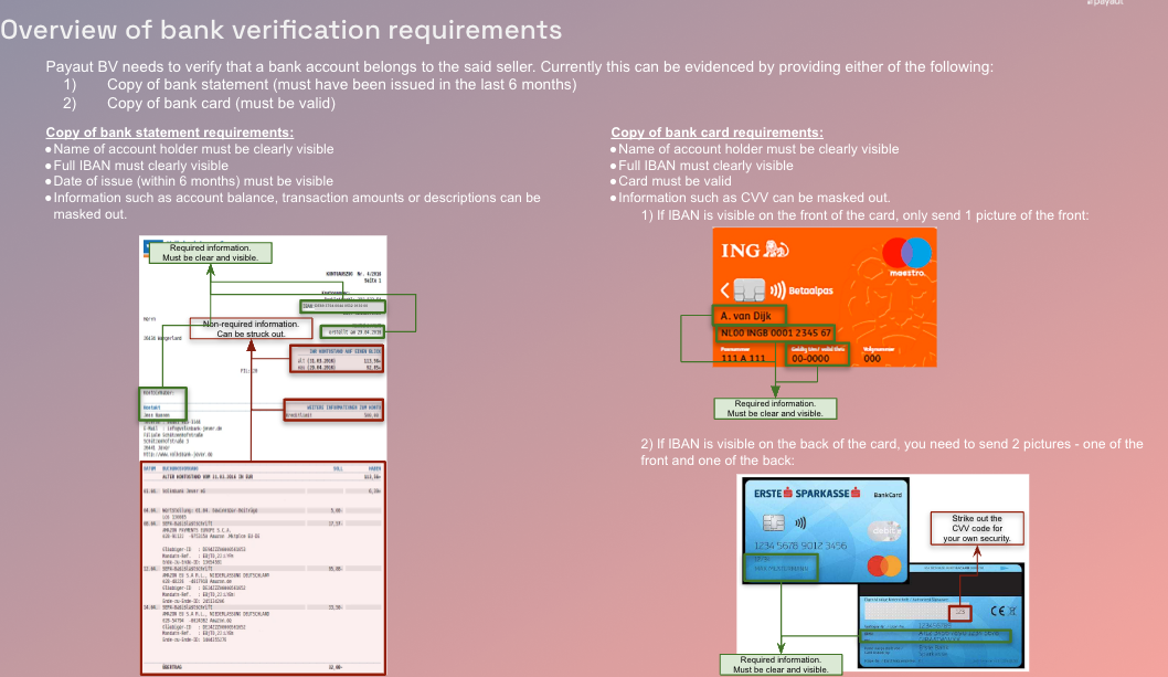 KYC information is required to be uploaded and processed in order to payout an accountHolder. Therefore, you can also collect documents and trigger the KYC process once an order has been placed and balance will be added to the accountHolders virtual account. However, please note that if KYC checks cannot be successfully completed for a seller, payouts cannot be executed for them.
